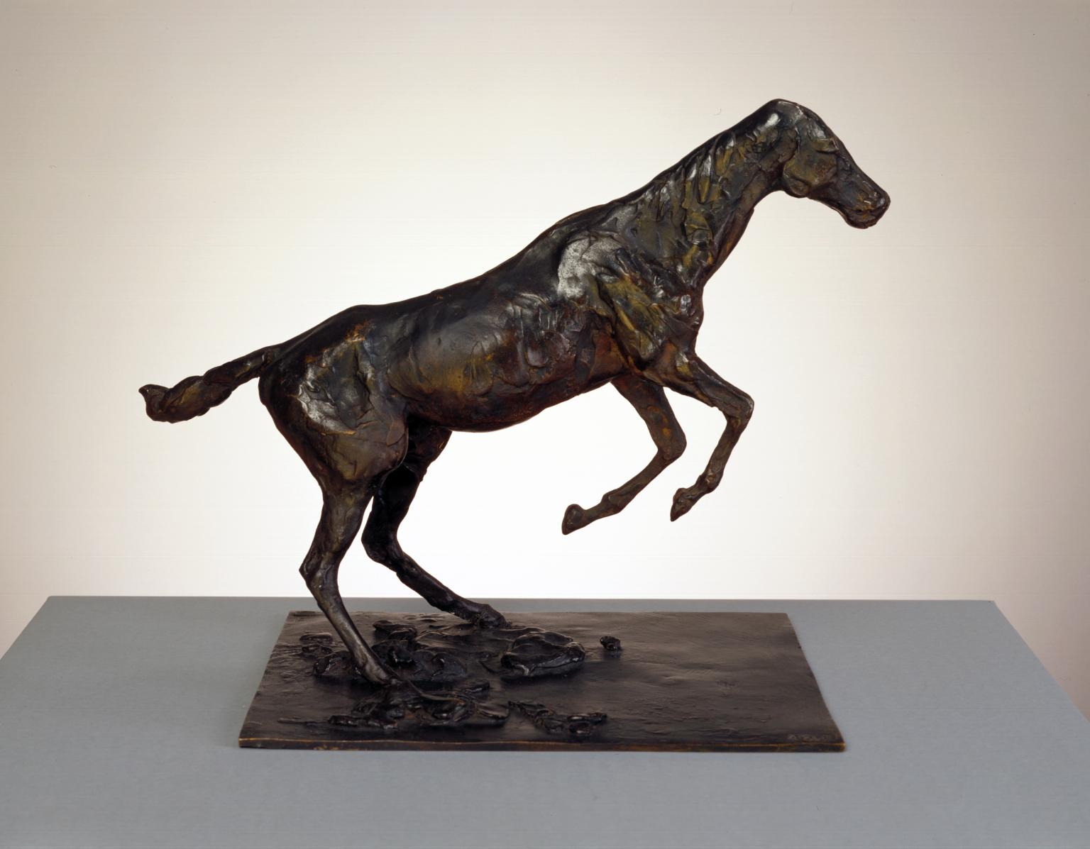 Tuttavia, quando la sua vista iniziò ad affievolirsi, a partire dal 1880, Degas iniziò a realizzare sculture in scala piccola, come quest’opera, ispirata alle fotografie di Edward Muybridge ritraenti cavalli in movimento. La sua fama ormai lo precedeva, e presentò le sue opere con grande successo a New York ed a Londra. Morì nel 1917 all’età di ottantatre anni.